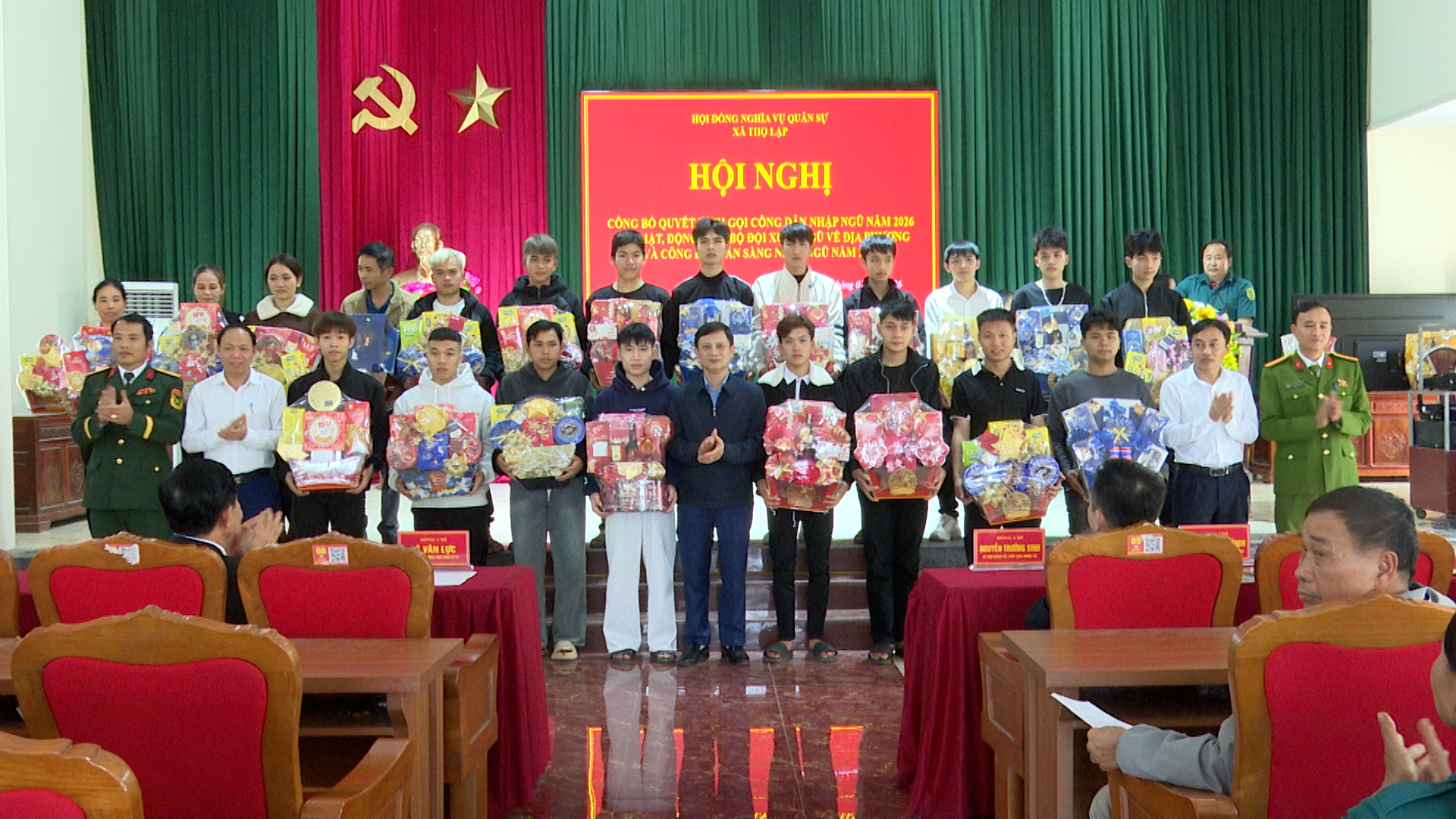 Tại hội nghị, xã Thọ Lập đã công bố và trao quyết định gọi công dân tham gia nghĩa vụ quân sự, nghĩa vụ công an nhân dân năm 2026. Đây là những công dân có phẩm chất chính trị, đạo đức tốt, đủ tiêu chuẩn về sức khỏe, trình độ văn hóa theo quy định của Luật Nghĩa vụ Quân sự và Nghĩa vụ Công an Nhân dân.