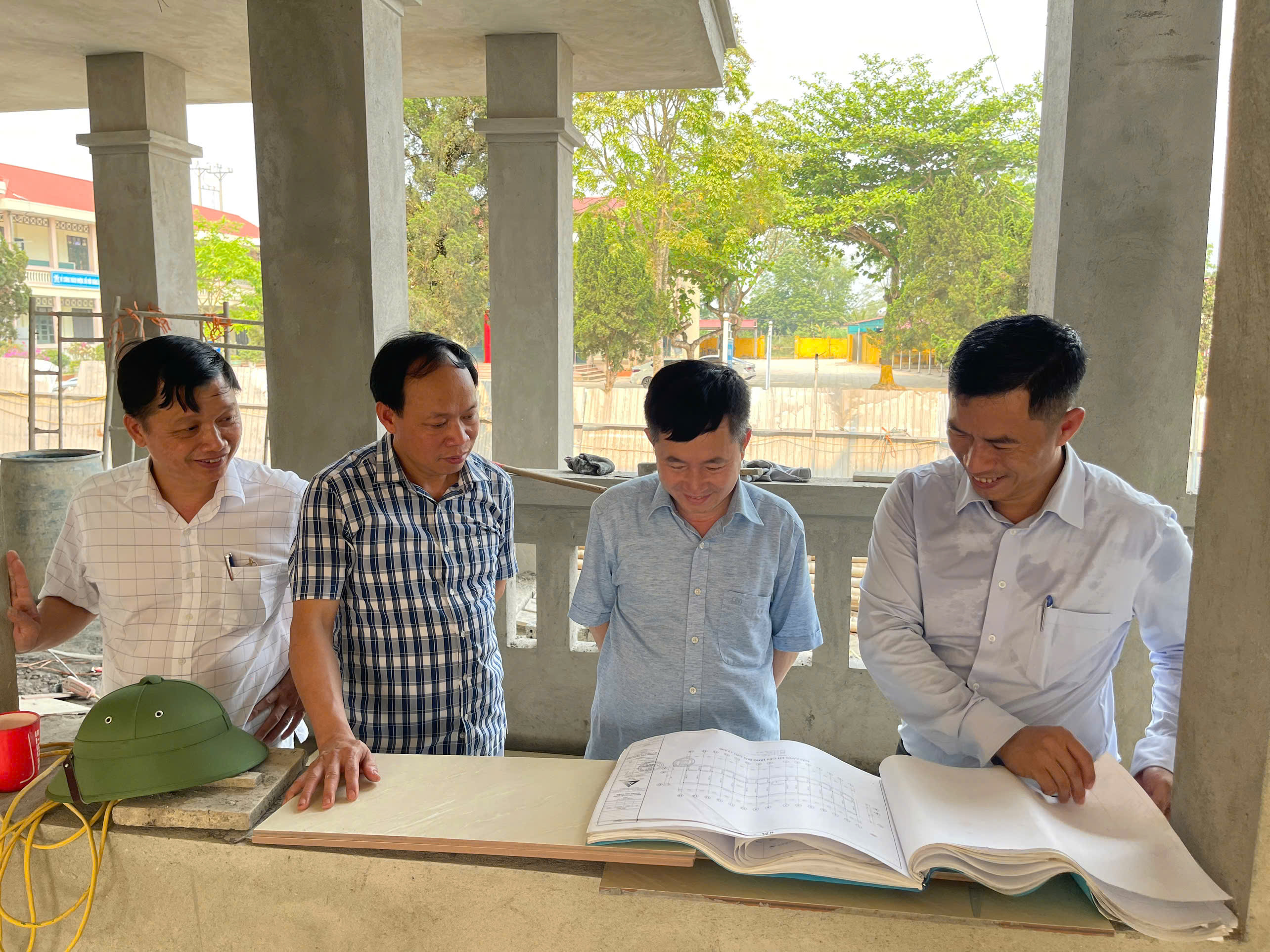 Đ/c Bí thư Đảng ủy Nguyễn Trường Sinh kiểm tra các dự án, công trình tại Trường Mầm non và Trường THCS Thuận Minh