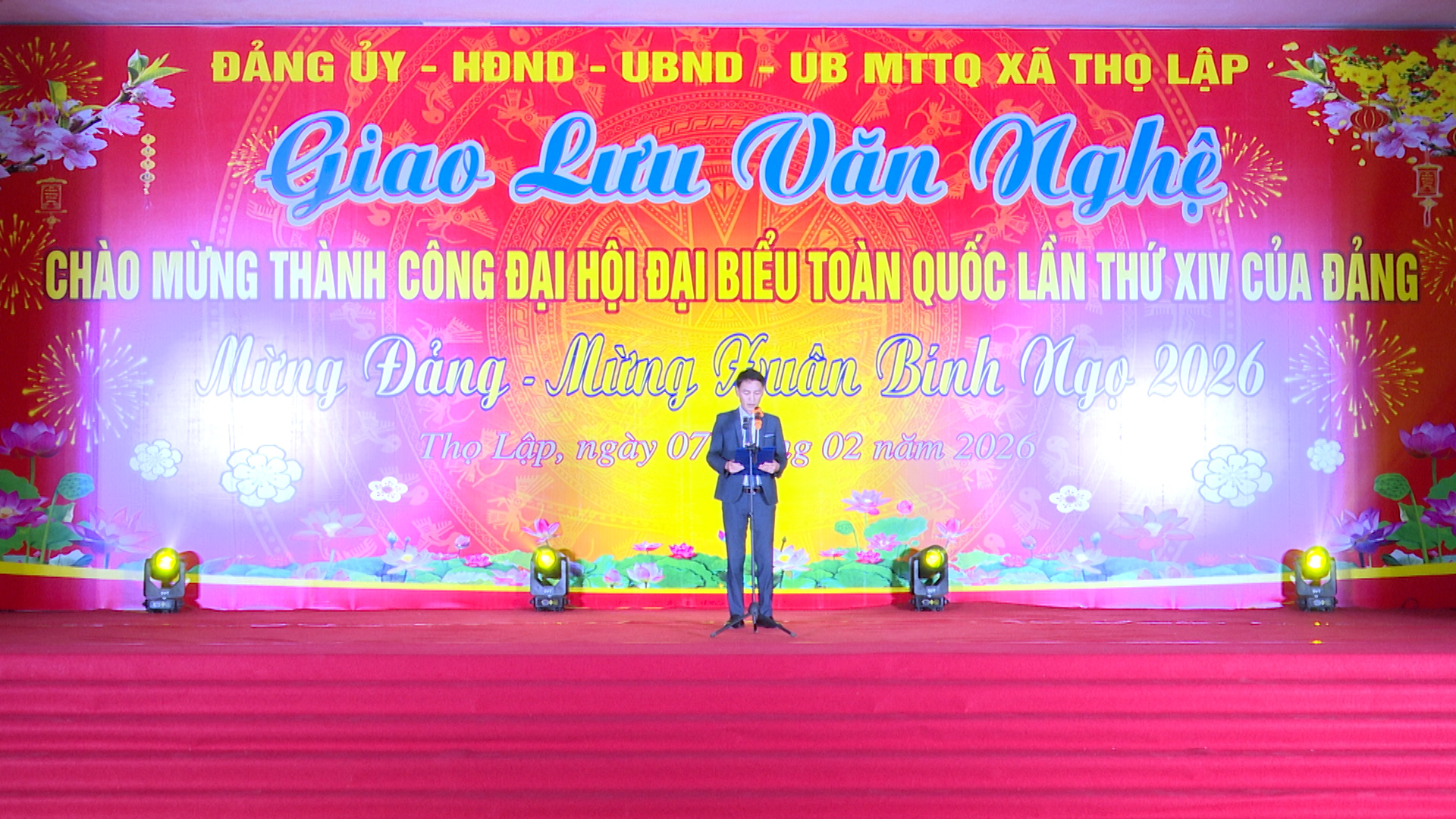 Phát biểu khai mạc chương trình, đồng chí Phó Chủ tịch UBND xã Lý Anh Xuân nhấn mạnh: Chương trình văn nghệ chào mừng thành công Đại hội đại biểu toàn quốc lần thứ XIV của Đảng, mừng Đảng -mừng Xuân Bính Ngọ 2026 không chỉ là lời ca tiếng hát, mà là bản hòa ca của ý Đảng, lòng dân, là nhịp đập trái tim của Nhân dân xã Thọ Lập hướng về Đảng quang vinh, về mùa xuân đổi mới; Là lời khẳng định: Đảng bộ và Nhân dân xã Thọ Lập luôn đoàn kết, một lòng sắt son theo Đảng. Chương trình cũng là dịp để các thôn, các tổ chức, đoàn thể, các đơn vị trên địa bàn giao lưu, thắt chặt hơn nữa tinh thần đoàn kết, gắn bó và phát huy những giá trị văn hoá truyền thống của quê hương.