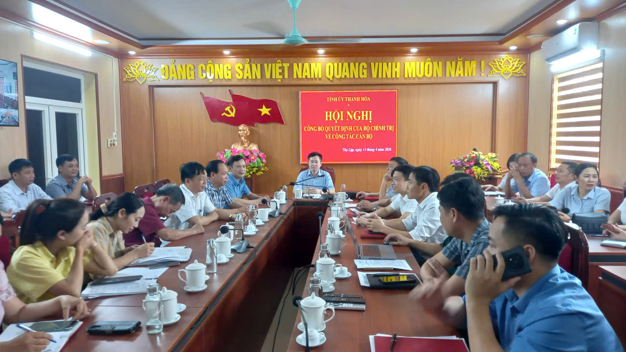 Chiều 13/4/2026, Ban Tổ chức Trung ương và Ban Thường vụ Tỉnh ủy Thanh Hóa tổ chức Hội nghị công bố quyết định của Bộ Chính trị về việc điều động, phân công đồng chí Thượng tướng Lê Đức Thái, Ủy viên Trung ương Đảng, Thứ trưởng Bộ Quốc phòng, Trưởng Đoàn ĐBQH tỉnh Thanh Hóa giữ chức Bí thư Tỉnh ủy Thanh Hóa. Hội nghị được tổ chức trực tiếp và kết nối đến các xã, phường trên địa bàn tỉnh. Đồng chí Nguyễn Trường Sinh, Bí thư Đảng ủy, Chủ tịch HĐND xã chủ trì tại điểm cầu xã Thọ Lập.