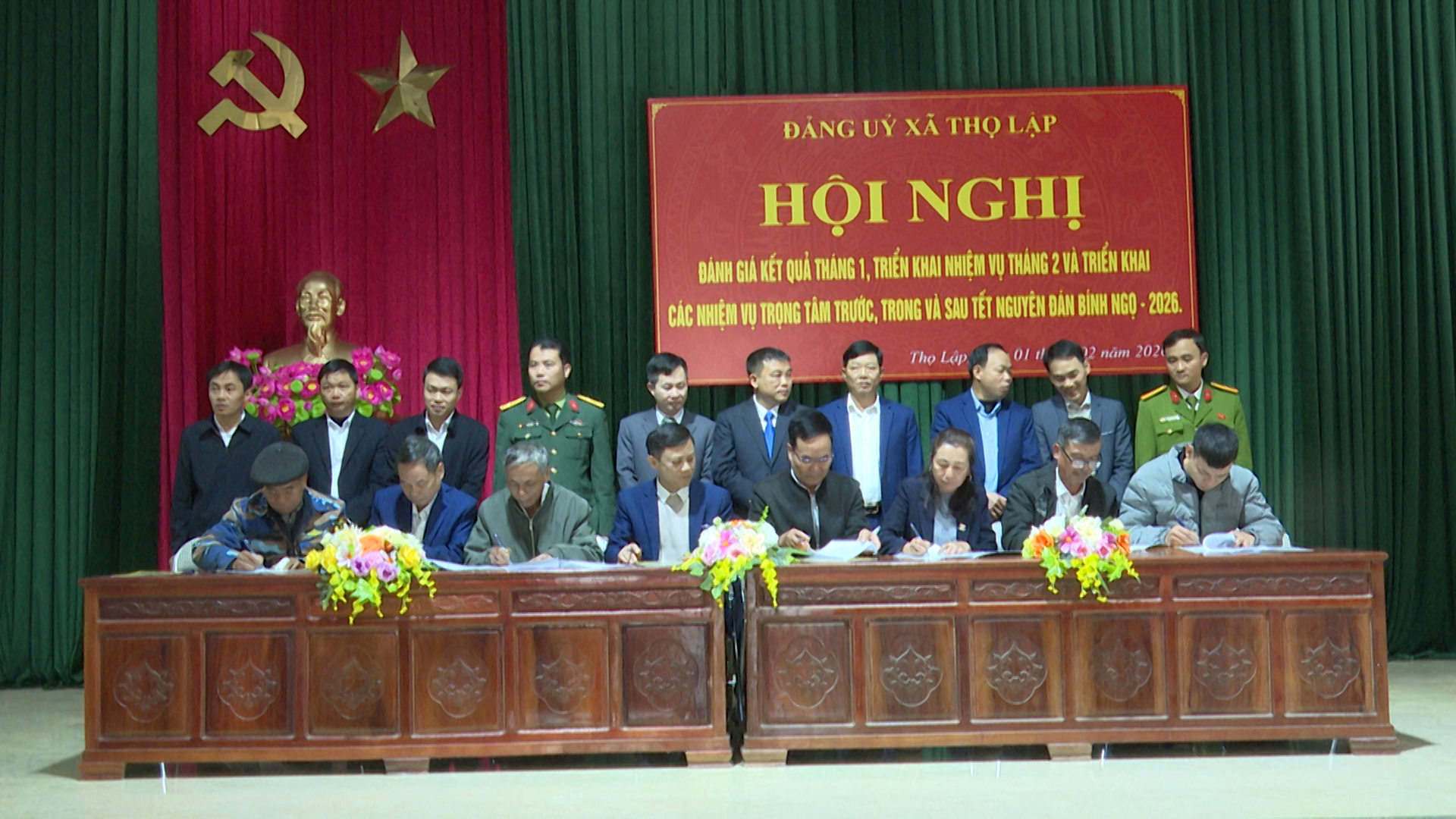 Sáng 1/2/2026, Ban Thường vụ Đảng uỷ xã Thọ Lập tổ chức hội nghị đánh giá kết quả thực hiện nhiệm vụ tháng 01, triển khai nhiệm vụ tháng 02 năm 2026 và triển khai kế hoạch thực hiện nhiệm vụ trọng tâm trước, trong và sau Tết Nguyên đán Bính Ngọ năm 2026; ký kết giao ước thi đua giữa Chủ tịch UBND xã với trưởng thôn, thủ trưởng các cơ quan, đơn vị.