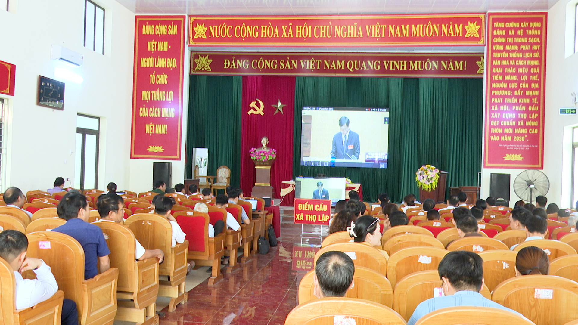 Hội nghị được kết nối đến trên 36 nghìn điểm cầu với trên 2,2 triệu người nghiên cứu, học tập. Đồng chí Nguyễn Trường Sinh, Bí thư Đảng ủy, Chủ tịch HĐND xã chủ trì tại điểm cầu xã Thọ Lập.